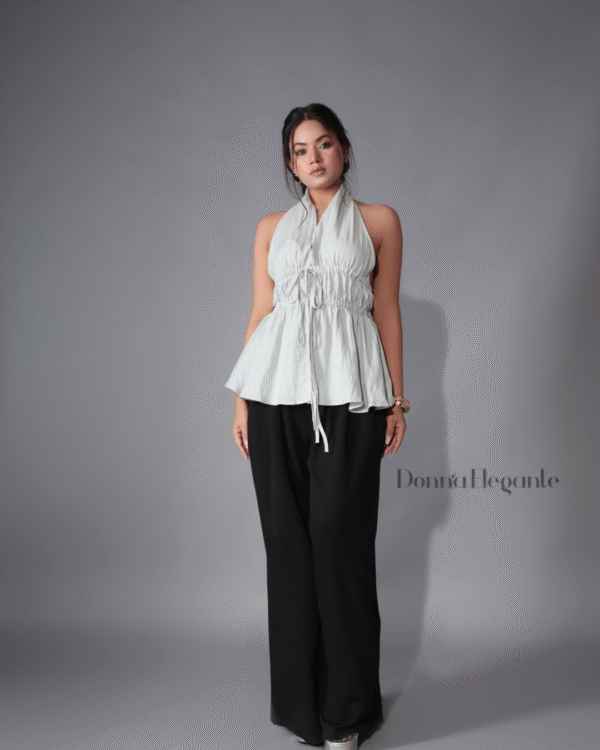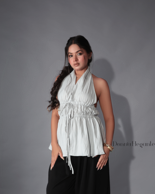 Whether you pair it with wide-leg pants, jeans, or a flowy skirt, this light grey halter top is made for easy styling and all-day wear. It’s one of those halter tops that brings together comfort, elegance, and just the right amount of edge.