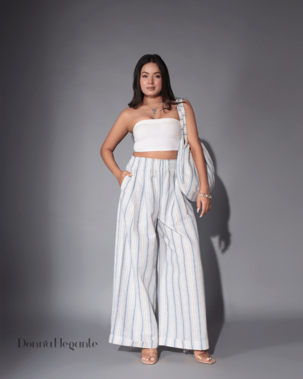 Be the first to review “Navy Blue Striped with Bag & Wide-Leg Pants”