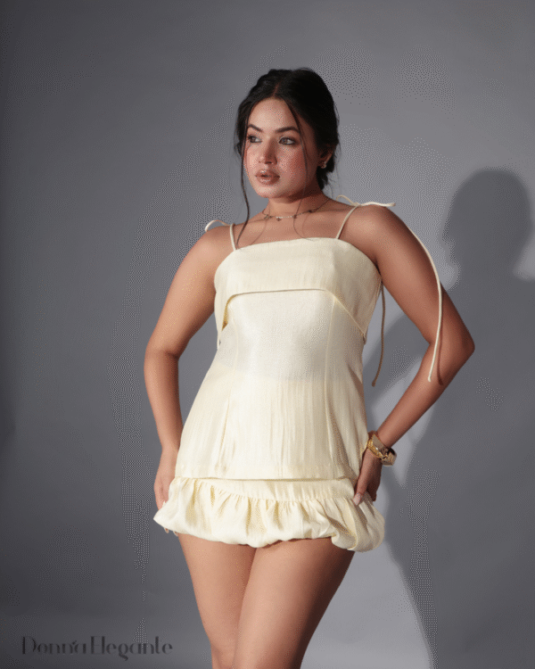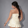 Style: Ruffle hem, tie-up shoulders, mini length
