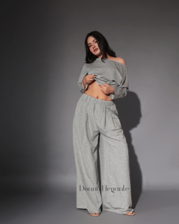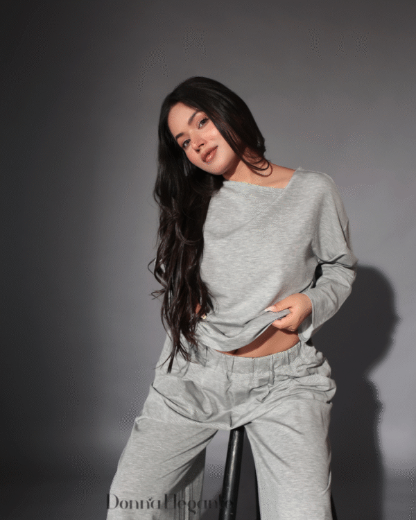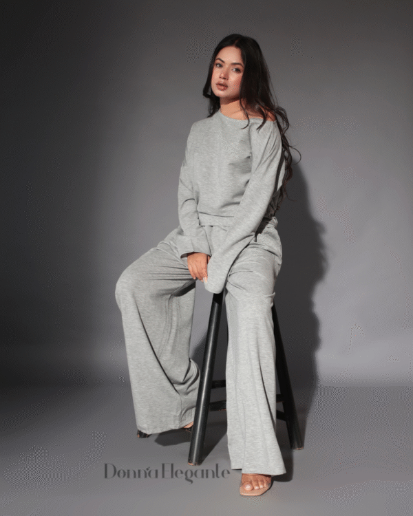 Elevate your everyday style with this effortlessly chic women’s co-ord set in a soft, heather grey tone. Designed for comfort without compromising on style, this women’s co-ord set and trouser features a relaxed-fit top with a drop shoulder and wide-leg trousers that move with you. Whether you’re lounging at home, heading out for a coffee run, or hopping on a casual Zoom call, this versatile women’s co-ord set has you covered.